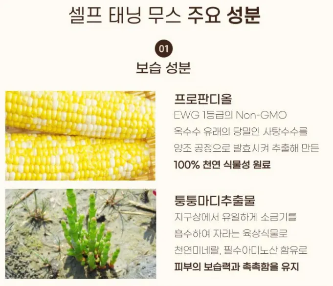 "그을린 무스"는 부담없이 도전할 수 있는 단기 태닝 제품이에요.