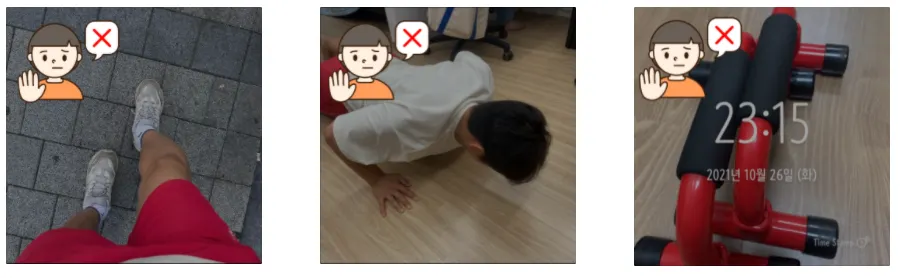올바른 예시 : 헬스장의 운동기구와 사람이 함께 보이게 찰칵!