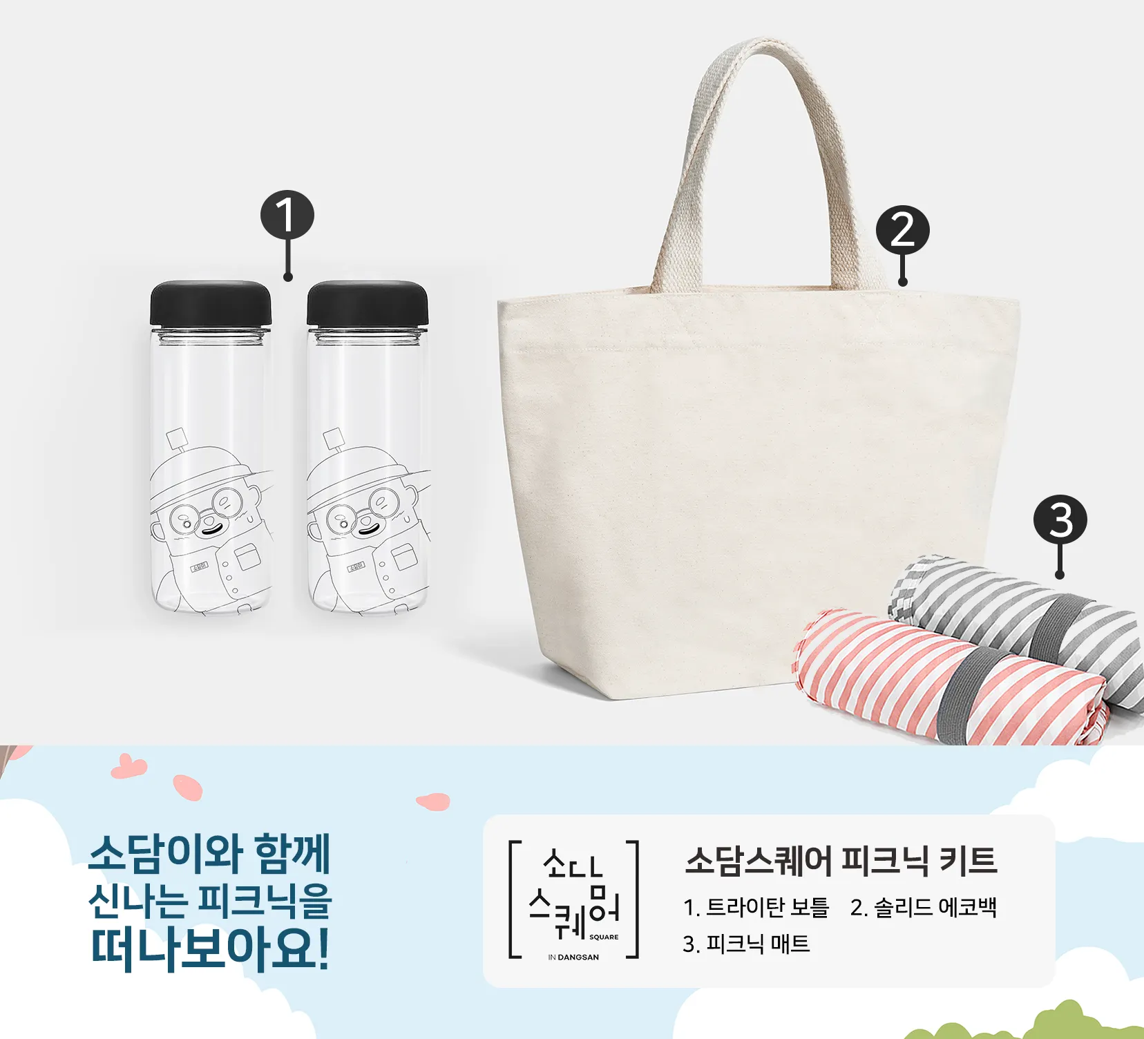 제품 구경 및 간단한 인증 후에 소담이와 '동행'할 수 있는 피크닉 키트를 증정합니다.