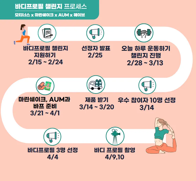 여러분은 운동만 꾸준히 하세요! 나머지는 저희 모티너스, 마린쉐이크, AUM 요가, 헤이브스튜디오가 끌고 갈게요!
