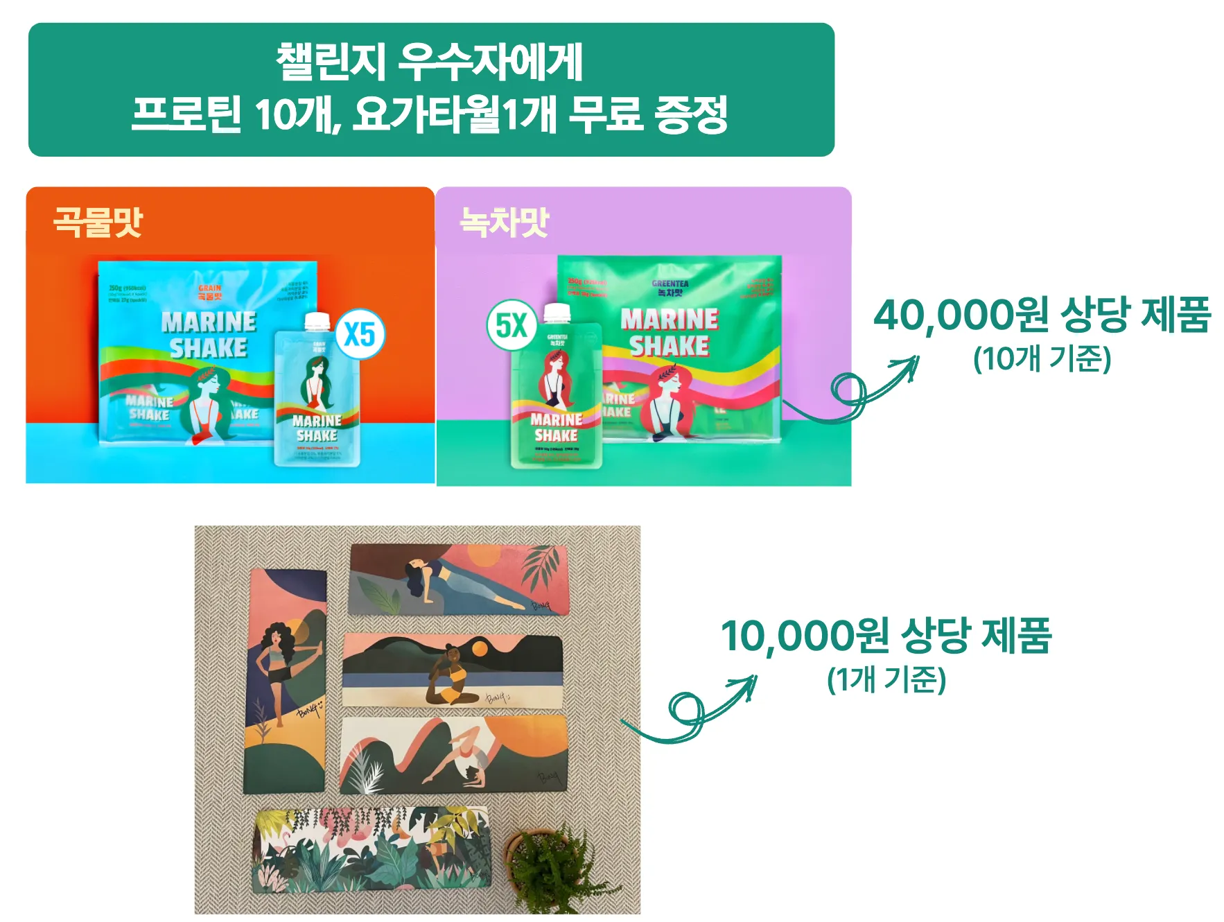 1단계 성공시, 마린쉐이크와 AUM요가타월을 드려요