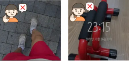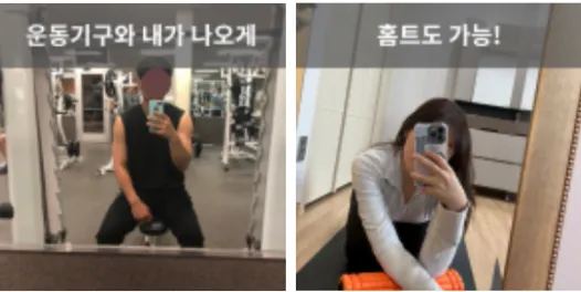 올바른 예시 : 운동도구(헬스장기구,폼롤러,요가매트 등)와 사람이 함께 보이게 찰칵! 홈트도 가능!