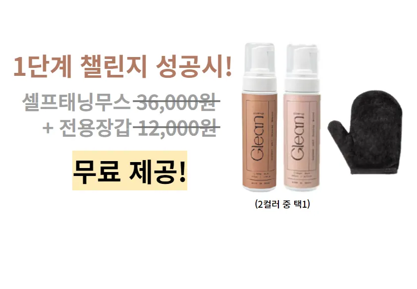 1단계 성공시, 그을린 셀프태닝 무스와 전용장갑을 드려요