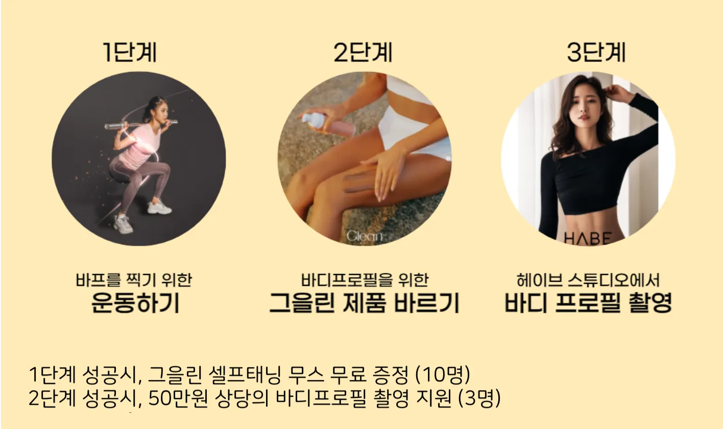 1단계 챌린지 성공하면 그을린 셀프 태닝 무스 증정! (10명)