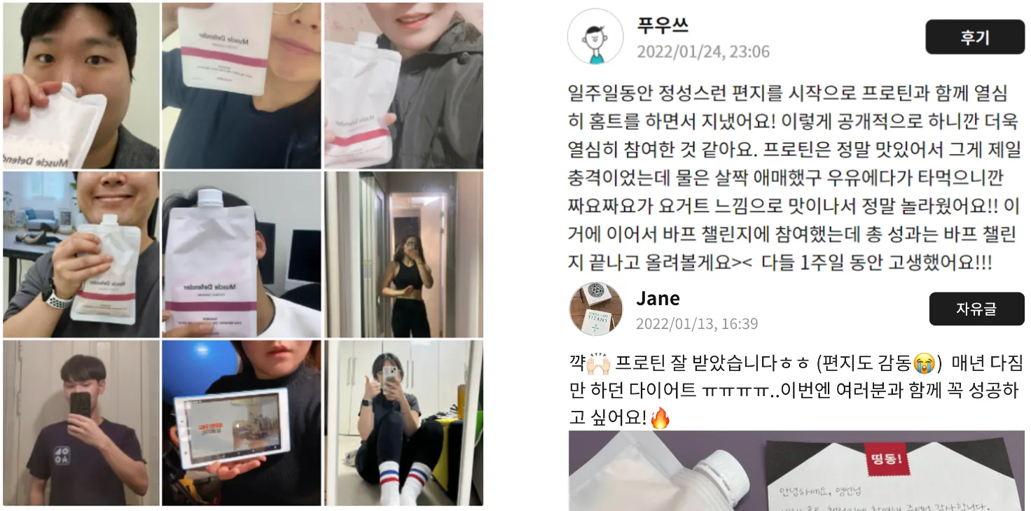 챌린지 선정된 분들께 프로틴 3팩이 배송이 돼요.