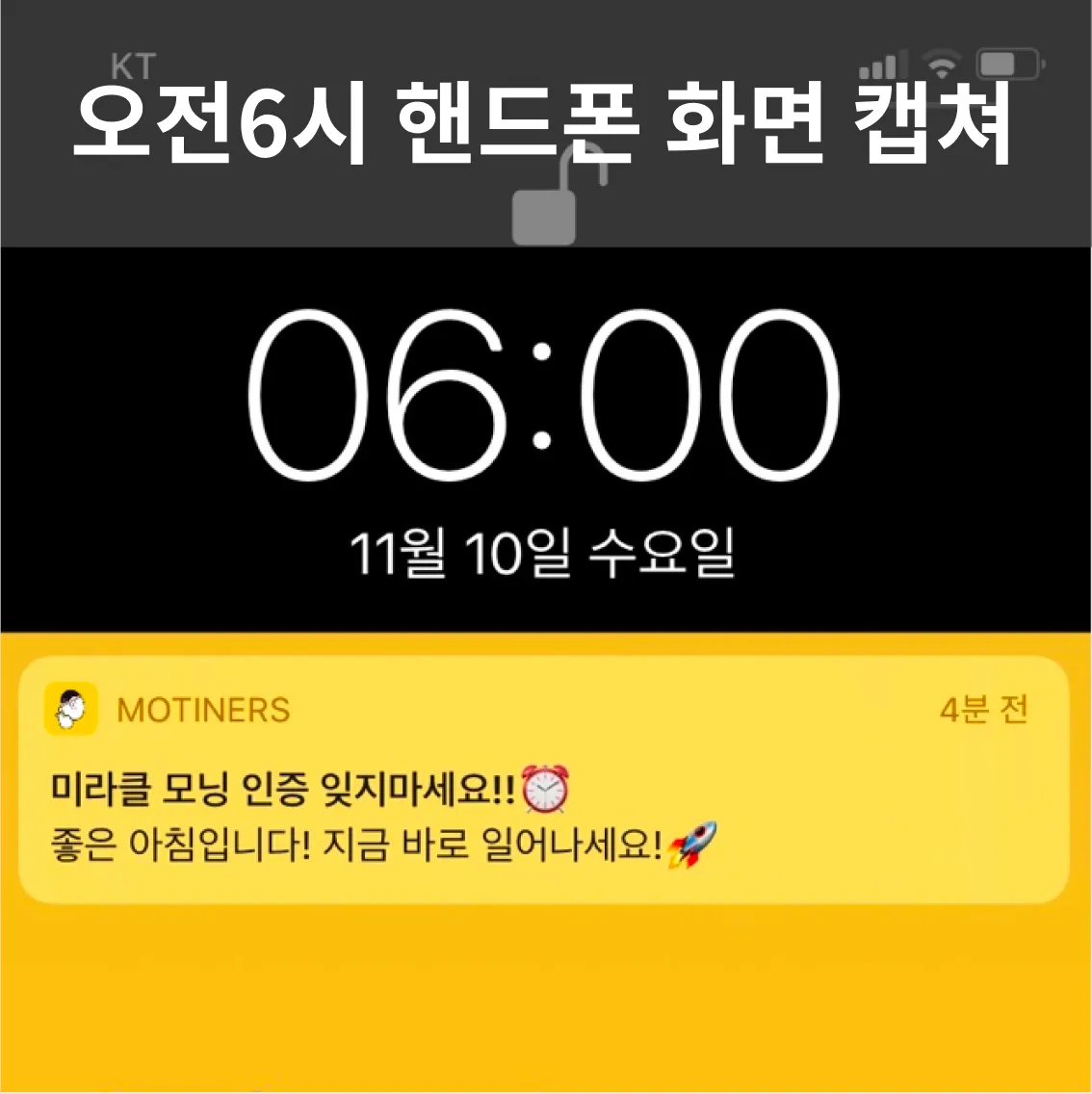 진행 방식 : 월~일까지 2주동안 모티너스 앱에서 미라클모닝 인증! (총 8번이상 성공시, 상품!)