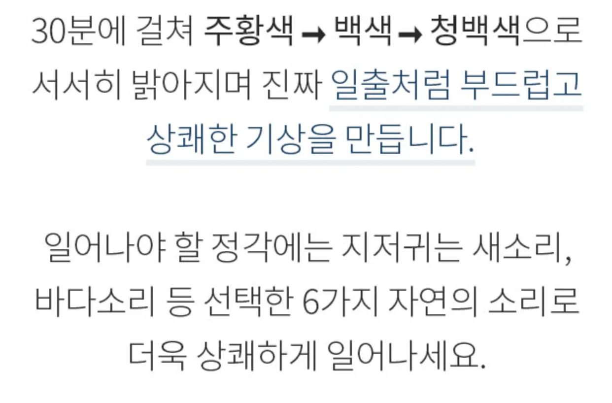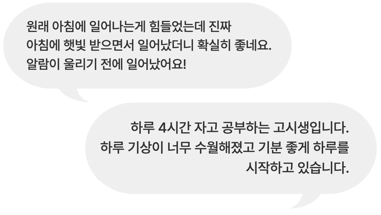 깜깜한 방에서도 아침 햇살을 받는 것처럼 상쾌한 아침을 만들어 줘요!