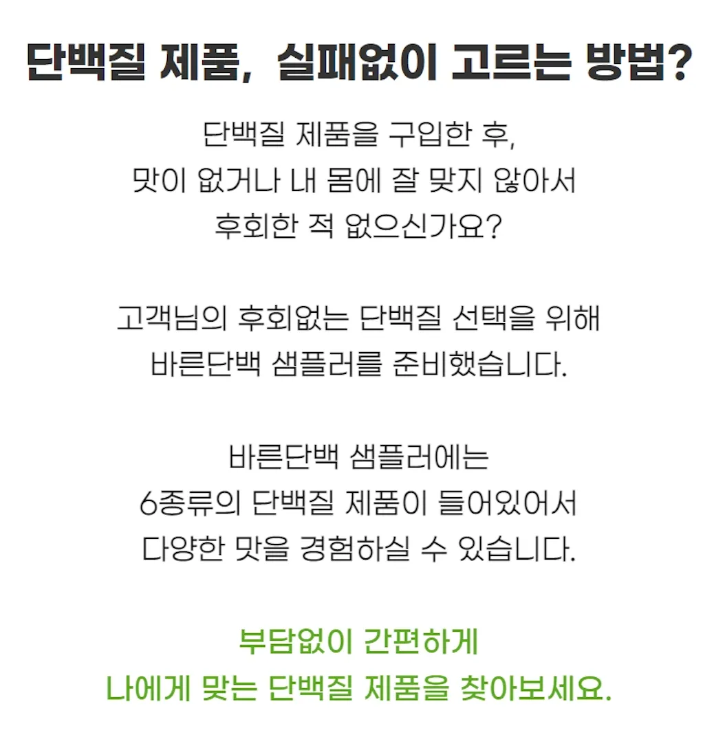 ‘바른단백 샘플러 5가지맛’ 선택 후 구매 하세요 (할인된 가격!)