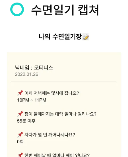 2주동안 하루 한번 모티너스의 수면일기 인증하기