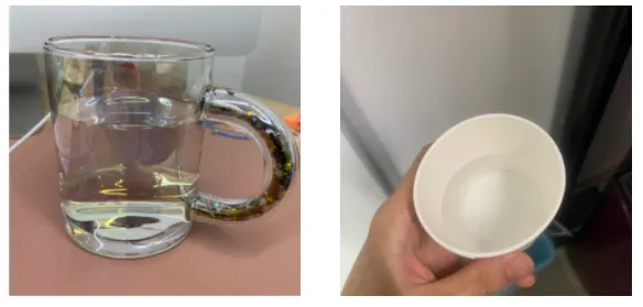 올바른 예시 : 물이 담긴 컵, 텀블러와 물이 보이게 찰칵!